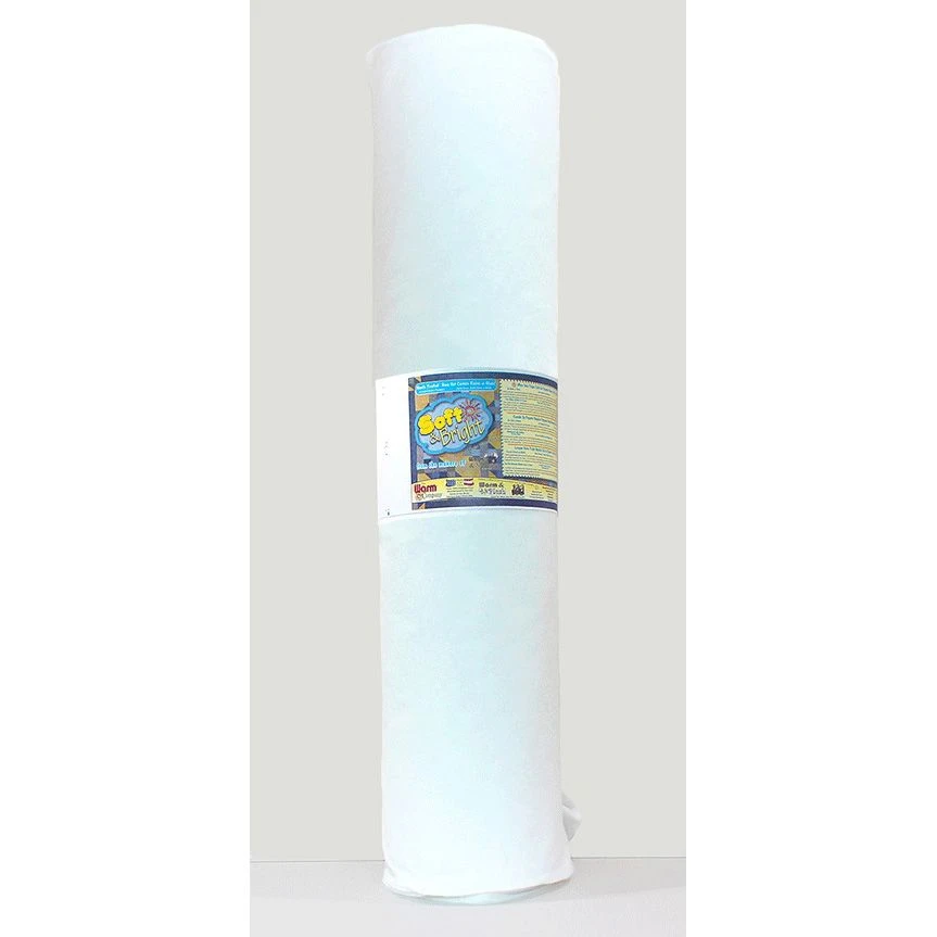 The high-quality polyester fibre is soft and fluffy to the touch. The evenly layered fibres will stay in place inside your quilt and Soft & Bright will keep its shape even after a lifetime of gentle washings. The thin base material holds the fibre in place preventing slipping making free motion quilting a breeze!