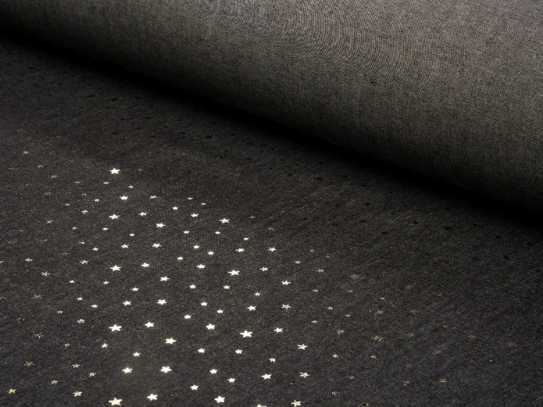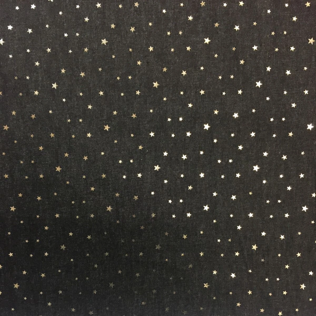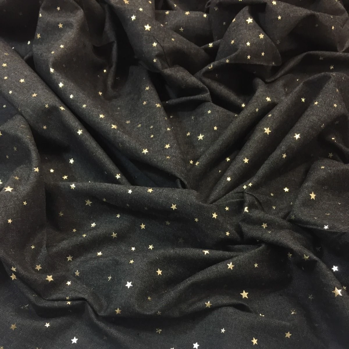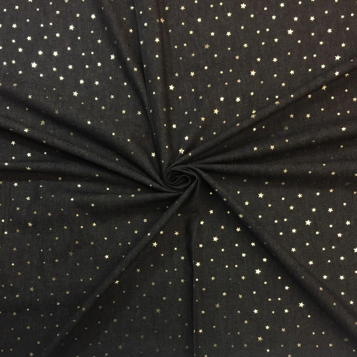 Lovely weight Chambray fabric embellished with a mini gold metallic star. Ideal for a host of projects from bags through to dresses and more.
